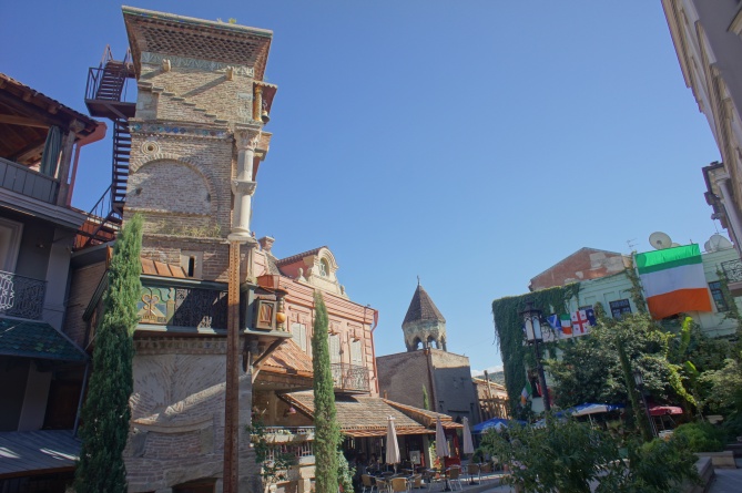 Avant la visite de demain, degustation de specialites locales: khachapuri (pate a pain + fromage, snack de base dont il existe 5 variantes au moins ici!), et chakaruli (ragout de mouton (encore!) aux prunes et aux herbes (ca change))...